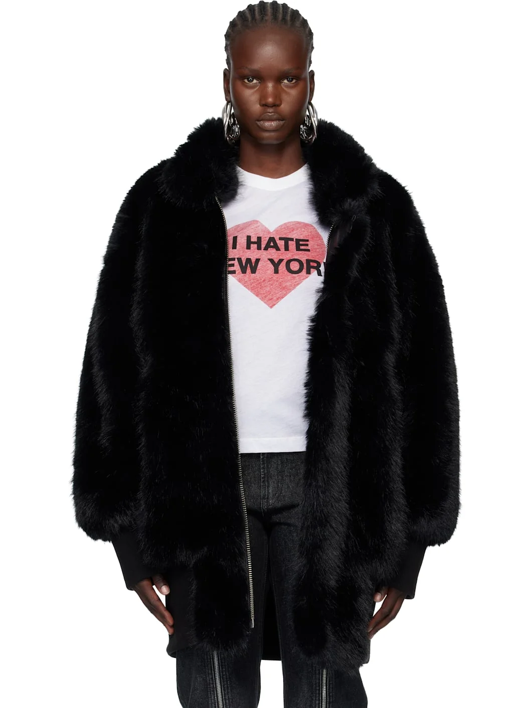 Faux-fur coat. · Stand collar · Zip closure · Rib-knit hem and cuffs · Full satin lining Supplier color: Black Body: 100% polyester. Trim 1: 95% polyester, 5% elastane. Trim 2: 100% lambskin. Lining: 100% viscose. Made in Turkey 252999F059000
