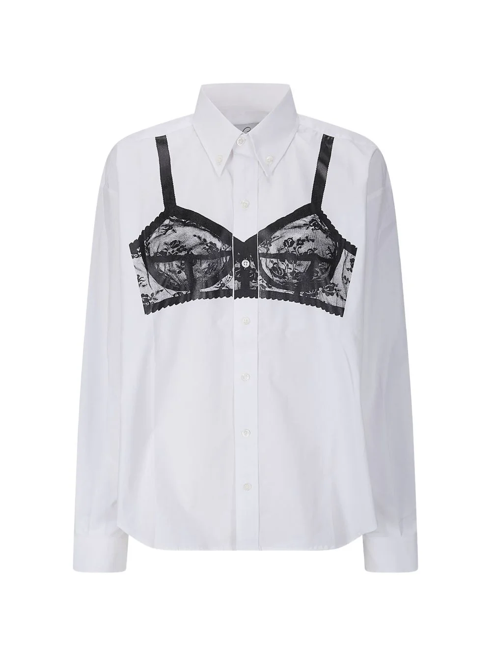 bra-print button-down shirt Highlights - White - Button-down collar - Cotton - Button fastening - Long sleeves - Trompe l'oeil bra print Imported Composition Cotton 100% Washing instructions Read Manufacturer Guidelines