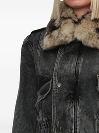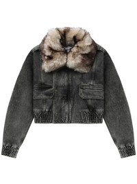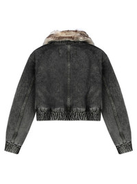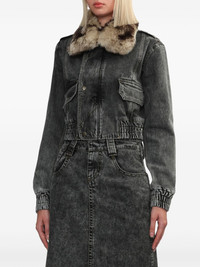 cropped denim bomber jacket Highlights - Black - Cotton - Washed denim - Cropped - Concealed front zip fastening - Faux-fur trim - Front flap pockets - Long sleeves - Elasticated cuffs - Straight hem Imported Composition Cotton 100% Washing instructions Read Manufacturer Guidelines