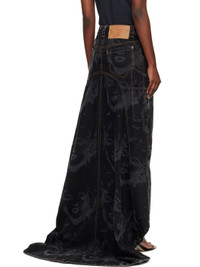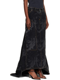 Non-stretch denim maxi skirt. · Fading and printed graphic pattern throughout · Belt loops · Five-pocket styling · Zip fly · Logo patch at back waistband · Contras stitching in tan Supplier color: Black 100% cotton. Made in Tunisia 252999F093002