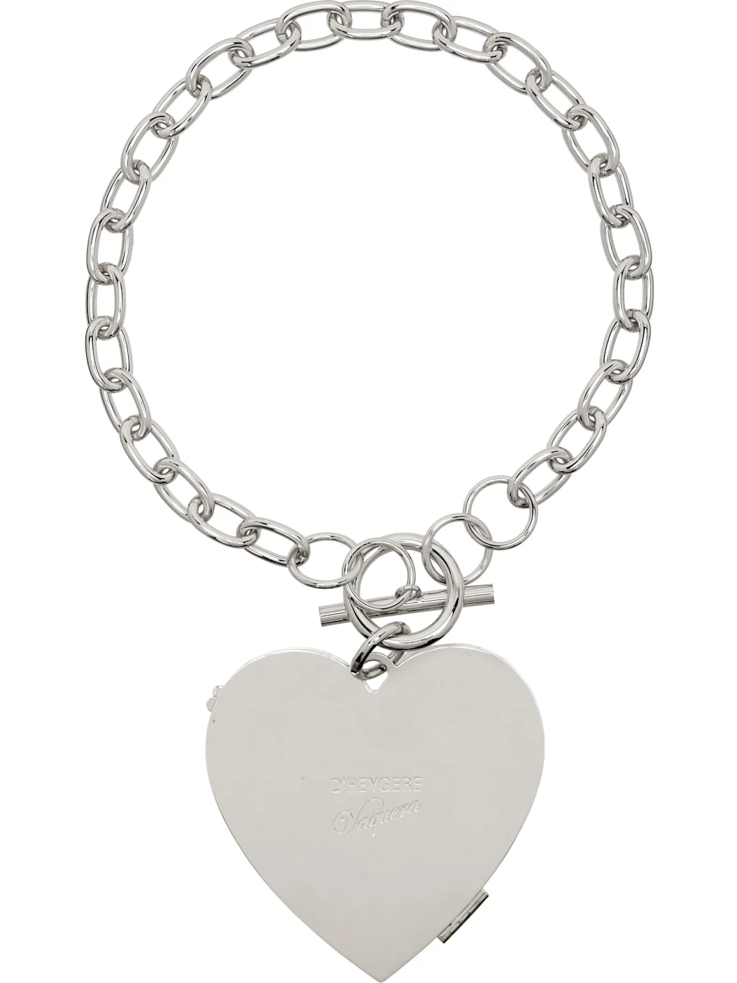 Cable chain necklace in silver-tone brass. · Logo-engraved mirrored heart locket · Toggle fastening · L24" Part of the Vaquera x D'Heygere collaboration. Supplier color: Silver Brass. Made in Italy 252999F023000