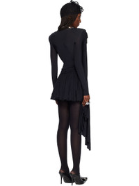 Stretch nylon jersey minidress. Draped panel with floral applique at shoulder. · Crewneck · Gathered panel at drop waist · Bubble hem · Padded shoulders · Partially lined Supplier color: Black Body: 73% polyamide, 27% elastane. Trim: 100% polyester. Made in United States 252999F052004