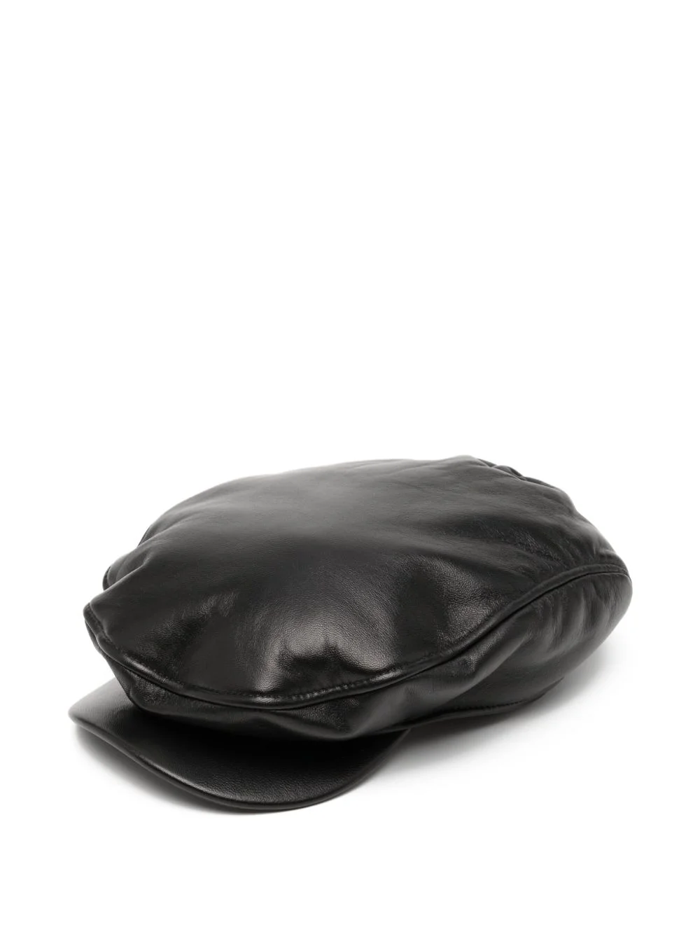 Newsboy leather beret Highlights - Black - Concealed front button fastening - Internal logo patch Made in Italy Composition Outer: Lamb Skin 100% Lining: Viscose 100% SIZE & FIT Measurement BRIM 4.33 in(11 cm) CIRCUMFERENCE 30.9 in(78.5 cm)