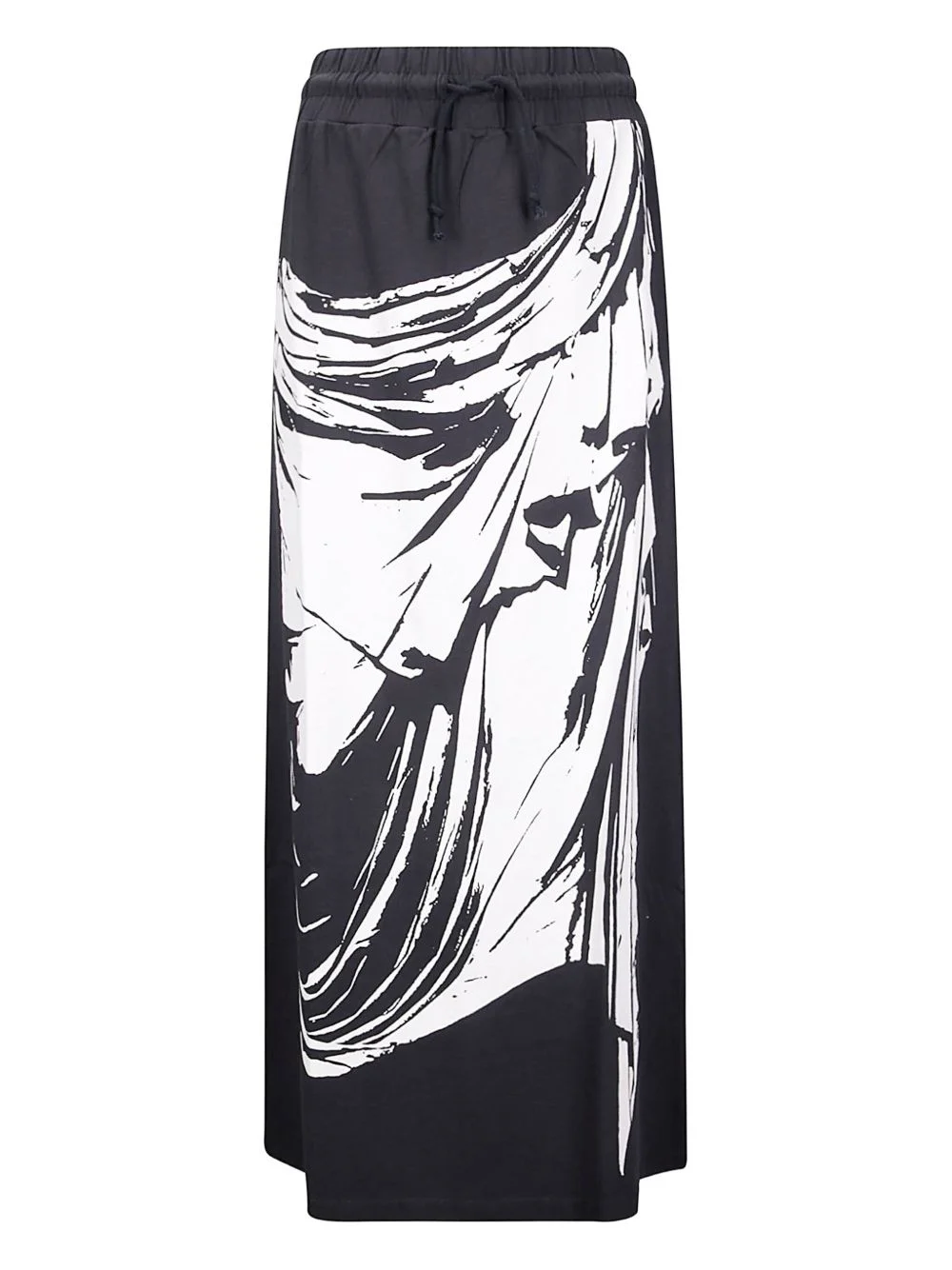 printed maxi skirt Highlights - Grey - Graphic print - Elasticated waistband - Drawstring fastening - Back slit Imported Composition Cotton 100% Washing instructions Read Manufacturer Guidelines
