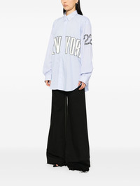printed striped shirt Highlights - Cornflower blue - Front button fastening - Slogan print to the rear - Buttoned-cuff sleeves Imported Composition Cotton 100% SIZE & FIT FittingInformation Designed to be unstructured, offering a loose fit throughout Made from a lightweight non-stretch fabric Washing instructions Machine Wash