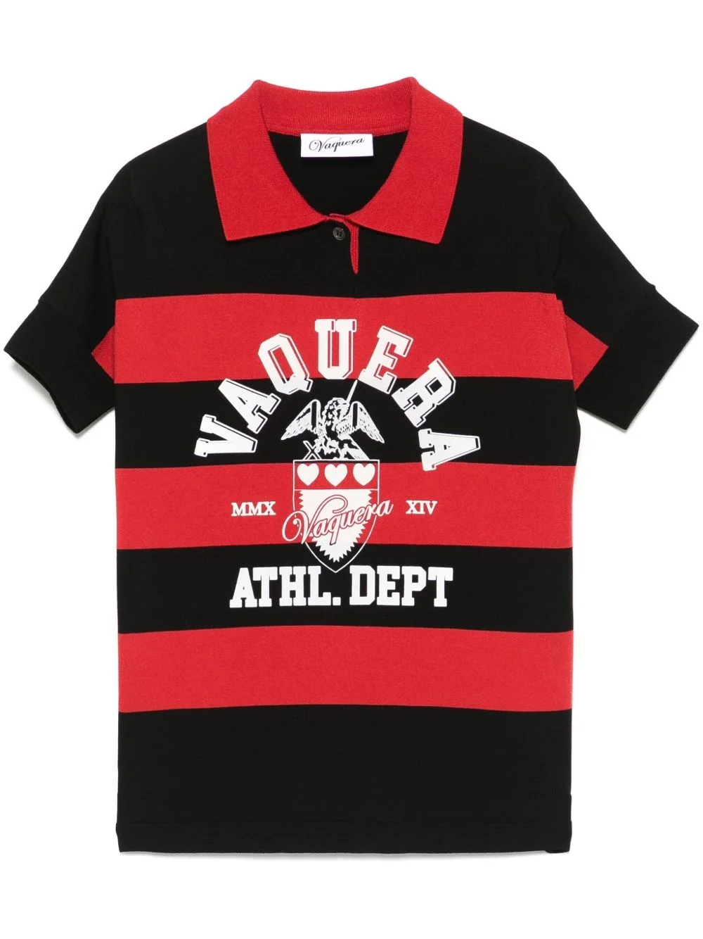 striped polo top Highlights - Black - Front button placket - Polo collar - Short sleeves - Logo print to the front Made in Italy Composition Viscose 83%, Polyester 17% Washing instructions Hand Wash