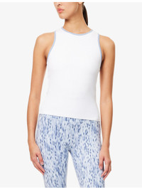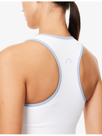 PRODUCT DETAILS - Varley stretch-woven top - 78% polyamide, 22% elastane - Slim fit, round neck, sleeveless, racerback, all-over ribbed detail, contrast trim, inner shelf with removable cups, straight hem - Machine wash at 30°C - True to size - Model is 5ft 10in/1.78m and wears a size small - Lightweight, stretchy Ref: R04470170