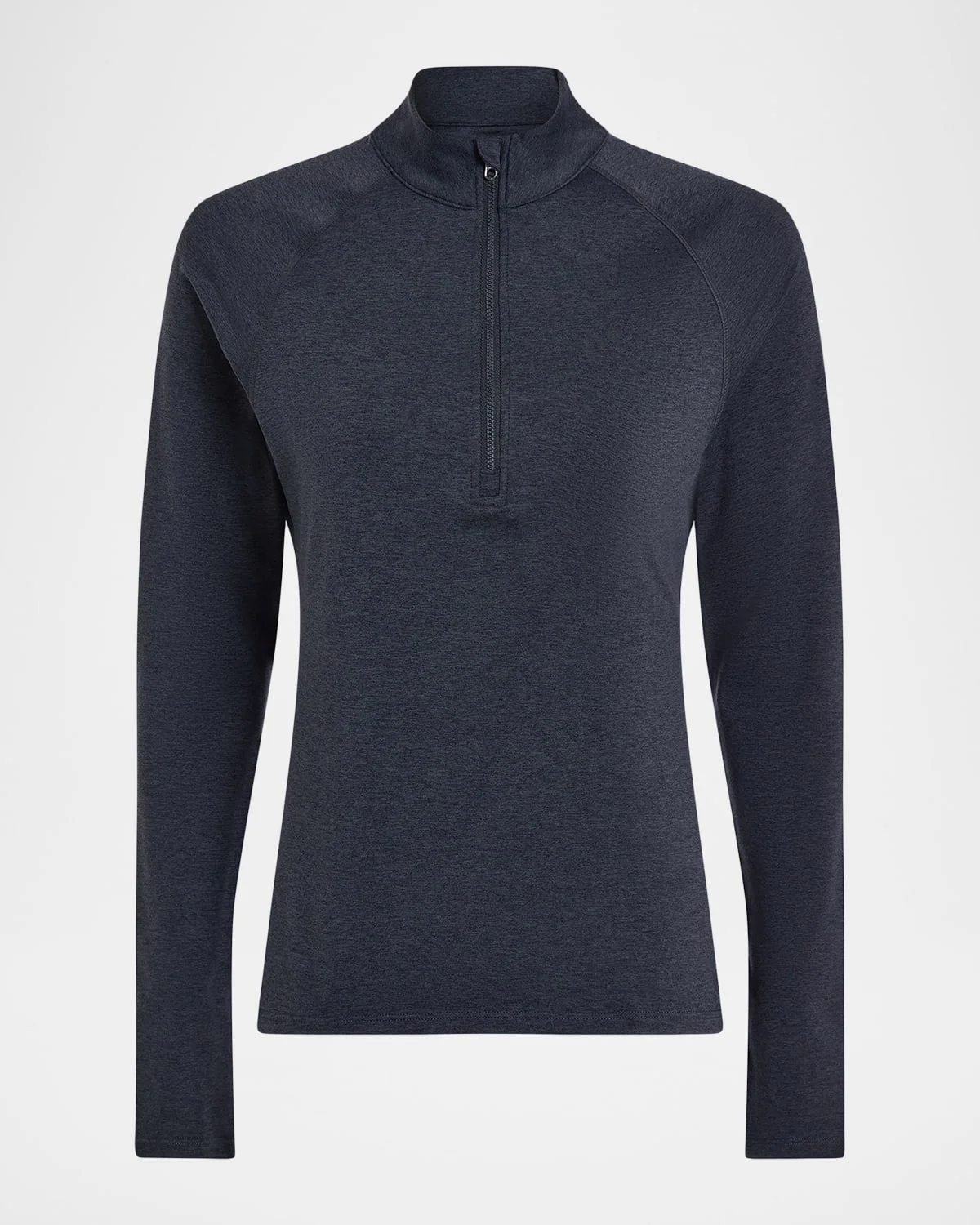 Varley's "Always Warm" pullover is made in supersoft marled jersey with fourway stretch Approx. 24.2"L from shoulder to hem Mock neckline; partial zip front Long sleeves with thumbhole cuffs; approx. 29.9"L Classic fit Hip length Pullover style Polyester/polyester/elastane Machine wash cold Imported