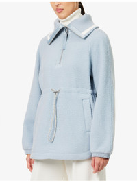 PRODUCT DETAILS - Varley fleece sweatshirt - 100% polyester; trims 87% cotton, 13% polyester - Exposed zip fastening at front - Relaxed fit, wide collar, long sleeves, two welt pockets at front, brand tab at side, drawstring waist, all-over fleece texture, curved hem, ribbed trims - Machine wash at 30°C - True to size - Model is 5ft 10in/1.78m and wears a size small - Midweight, stretchy Ref: R04563047