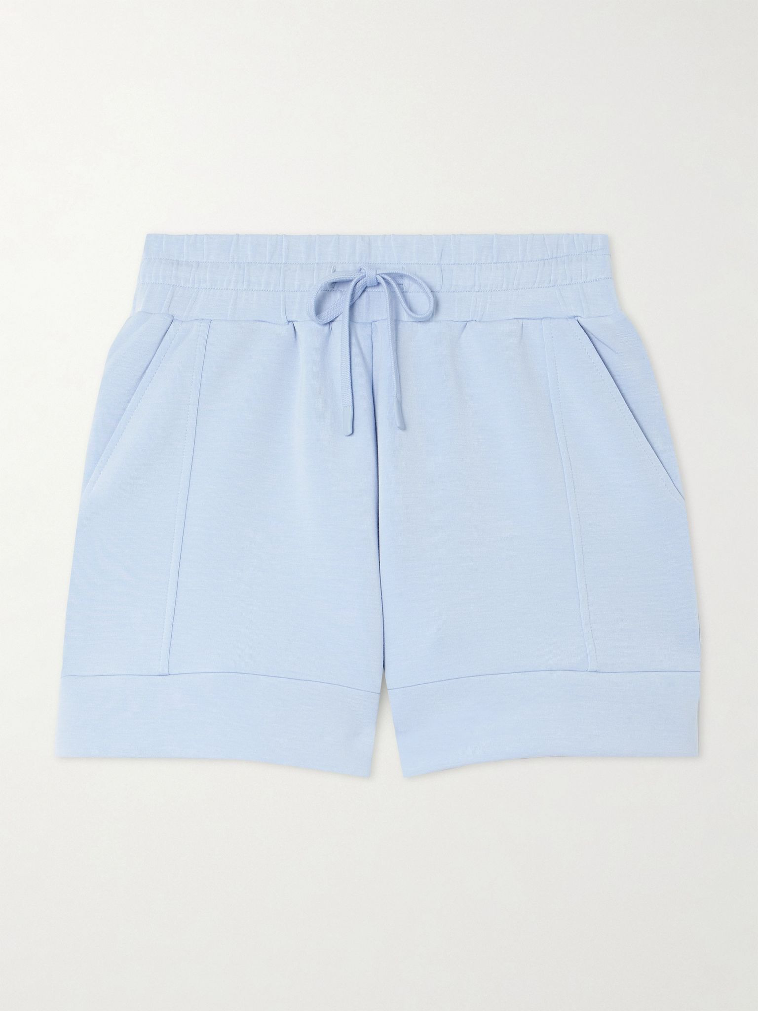 Varley's 'Atrium' shorts are ideal for workouts and rest days alike. They're made from soft jersey and cut for a relaxed fit with a comfortable elasticated waist. Pair yours with one of the label's cozy sweatshirts. Size & Fit - Fits true to size, take your normal size - High-rise, designed for a relaxed fit - Drawstring waist, designed for a comfortable fit - Mid-weight, slightly stretchy fabric - Model is wearing a size Small Details & Care - Light-blue jersey - Pull on - 72% viscose, 23% polyester, 5% elastane