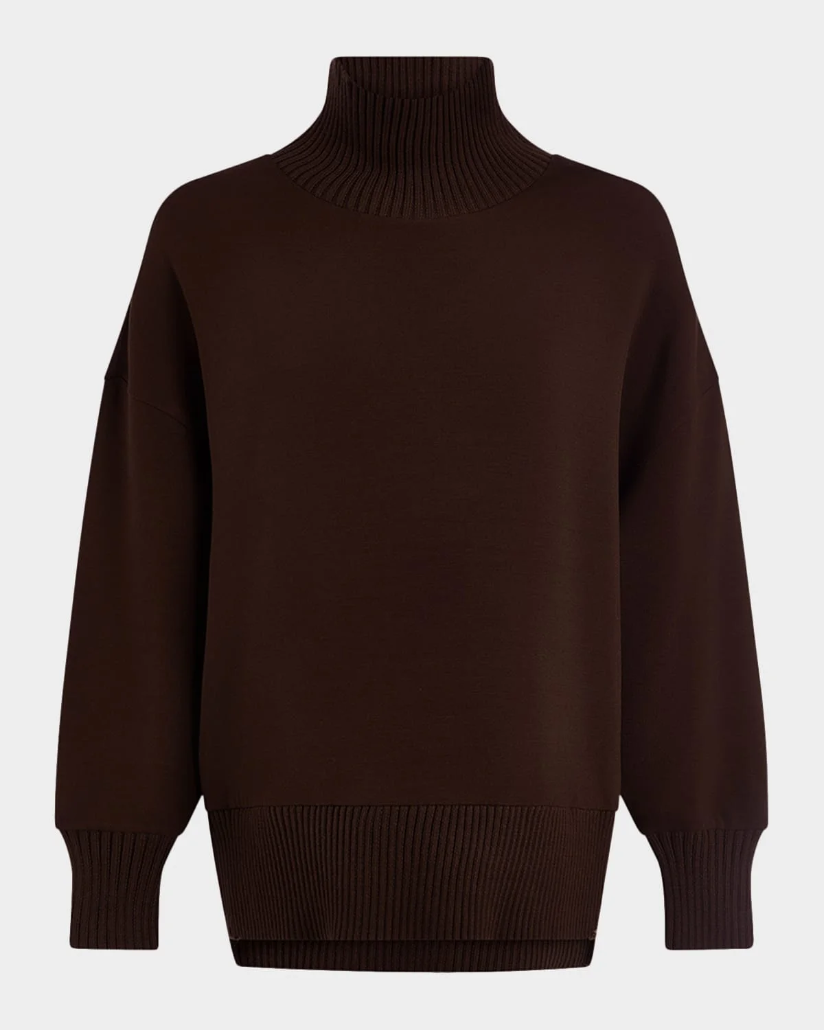 Varley "Barker" sweatshirt in signature DoubleSoft® fabric Approx. 18"L from shoulder to hem High neckline Dropped shoulders Long sleeves; approx. 18"L Deep side splits Hip length Relaxed fit Ribbed cuffs and hem Pullover style Viscose/polyester/elastane Imported