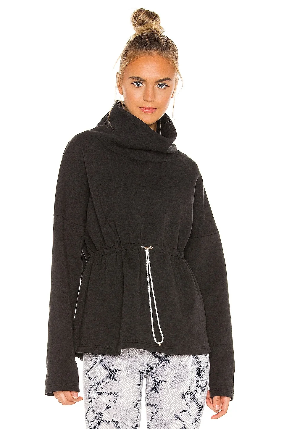 - 75% rayon 25% poly 5% elastane - High neck styling - Drawcord waist - Imported - The Varley Barton Sweatshirt is cut in a soft double-faced sweat, this style has a bungee cord at the waist for a customizable fit. - Revolve Style No. VARR-WK8 - Manufacturer Style No. VAR00403