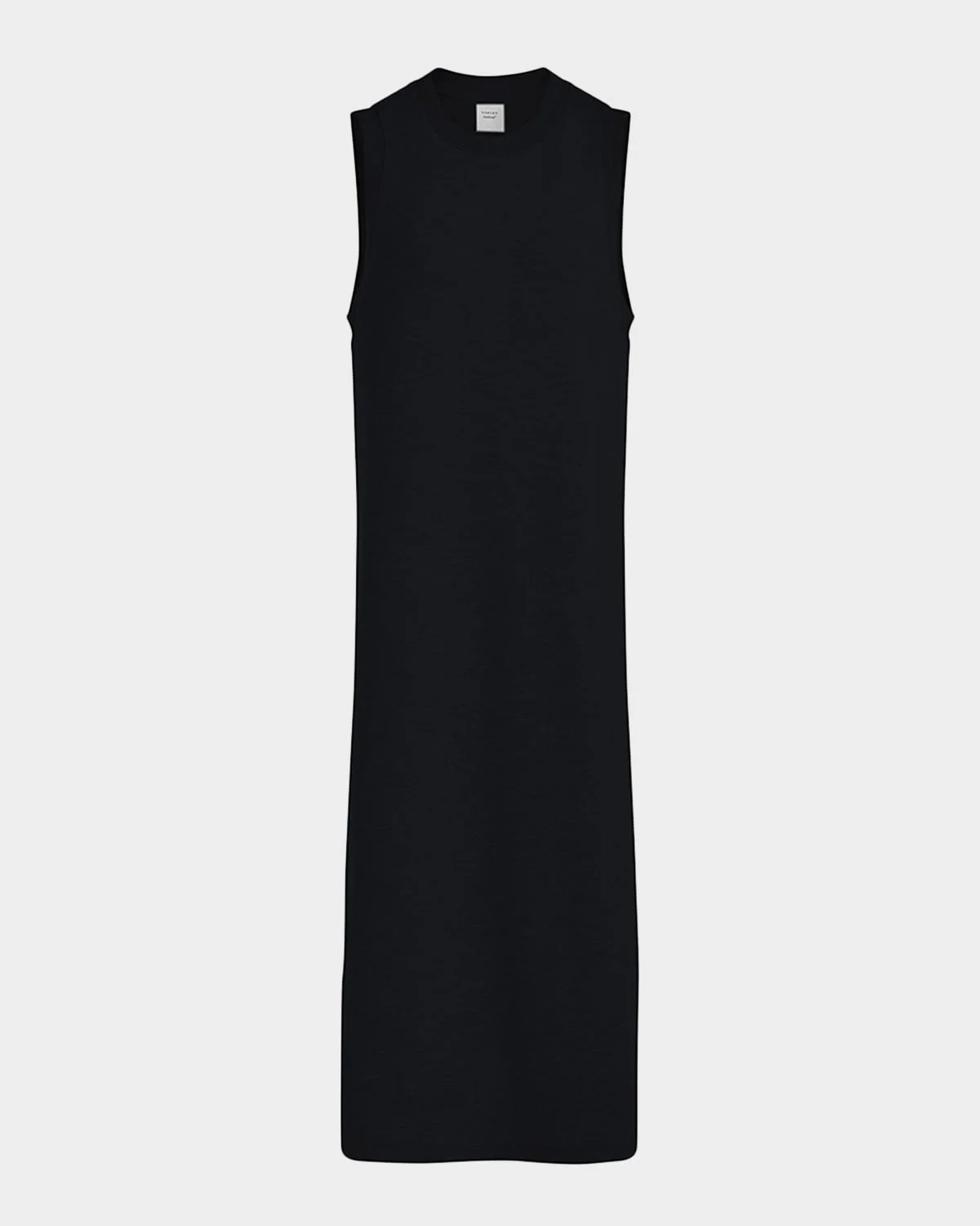 A chic wardrobe staple, the "Beatrice" dress by Varley is crafted from signature DoubleSoft® fabric and finished with decorative pointelle knitted trim along the neckline and armholes Approx. 46.1"L from shoulder to hem Crew neckline Sleeveless Thighhigh side slits Hem falls below the knee Straight silhouette Slipover style Viscose/polyester/elastane Machine wash cold Imported