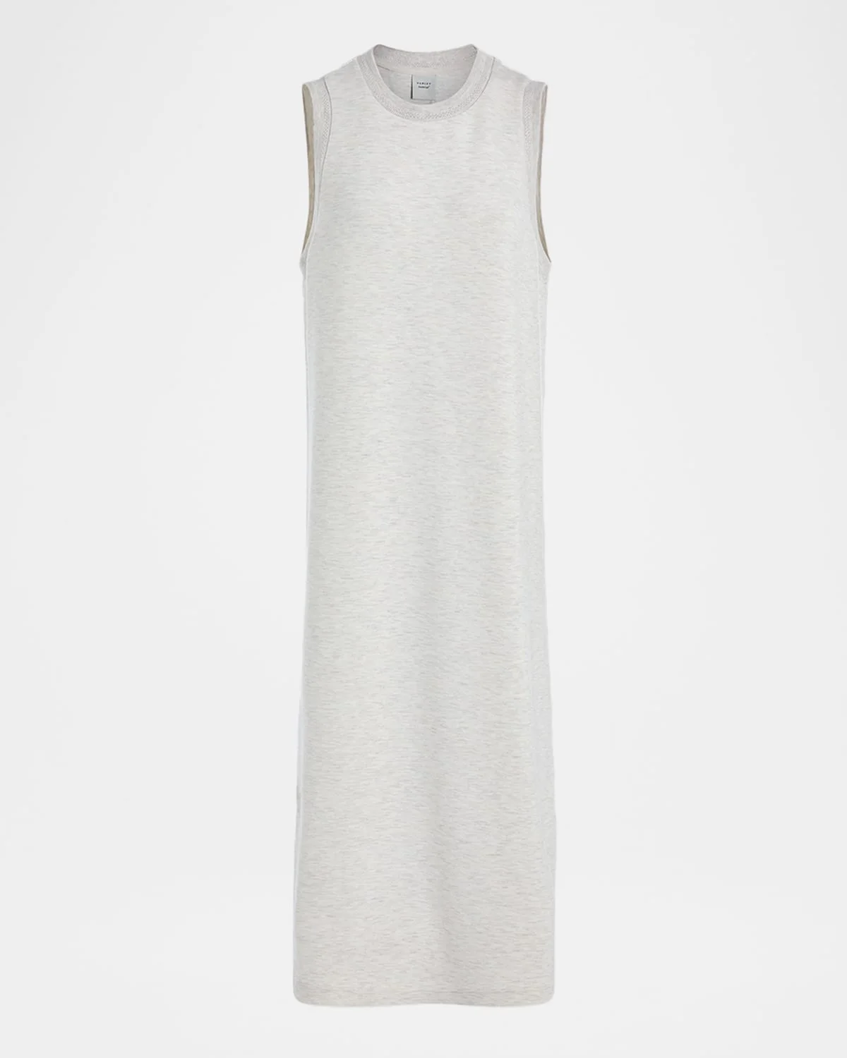 A chic wardrobe staple, the "Beatrice" dress by Varley is crafted from signature DoubleSoft® fabric and finished with decorative pointelle knitted trim along the neckline and armholes Approx. 46.1"L from shoulder to hem Crew neckline Sleeveless Thighhigh side slits Hem falls below the knee Straight silhouette Slipover style Viscose/polyester/elastane Machine wash cold Imported