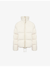 PRODUCT DETAILS - Varley woven puffer jacket - 100% polyester; filling 100% polyester; lining 100% nylon - Exposed zip fastening at front - Funnel neck, long sleeves, ribbed cuffs, all-over padding, gold-toned hardware, adjustable drawstring hem - Machine wash at 30°C - True to size - Model is 5ft 10in/1.78m and wears a size small - Midweight, non-stretch Ref: R04555095