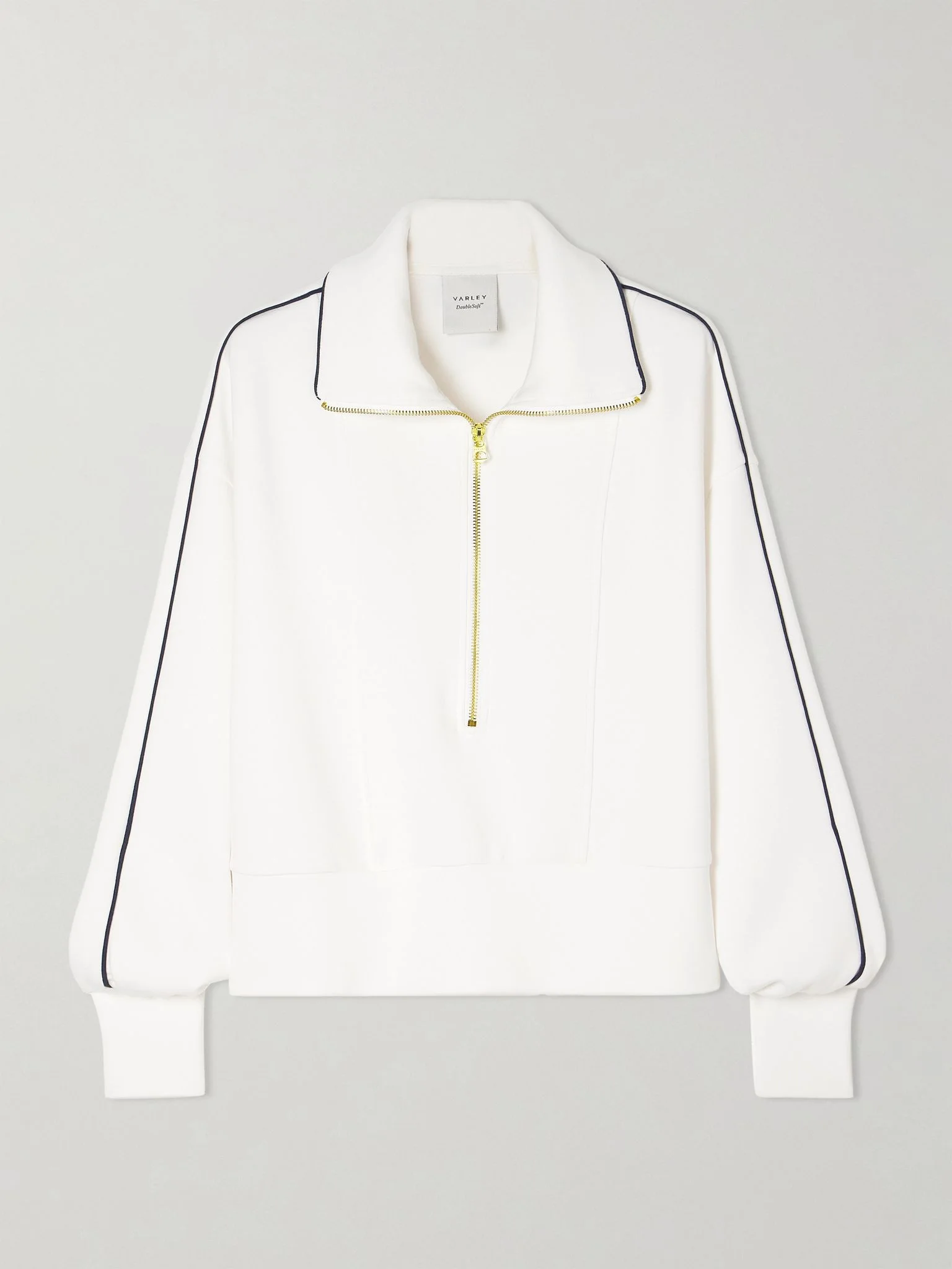 Davenport piped stretch-jersey half-zip sweatshirt White