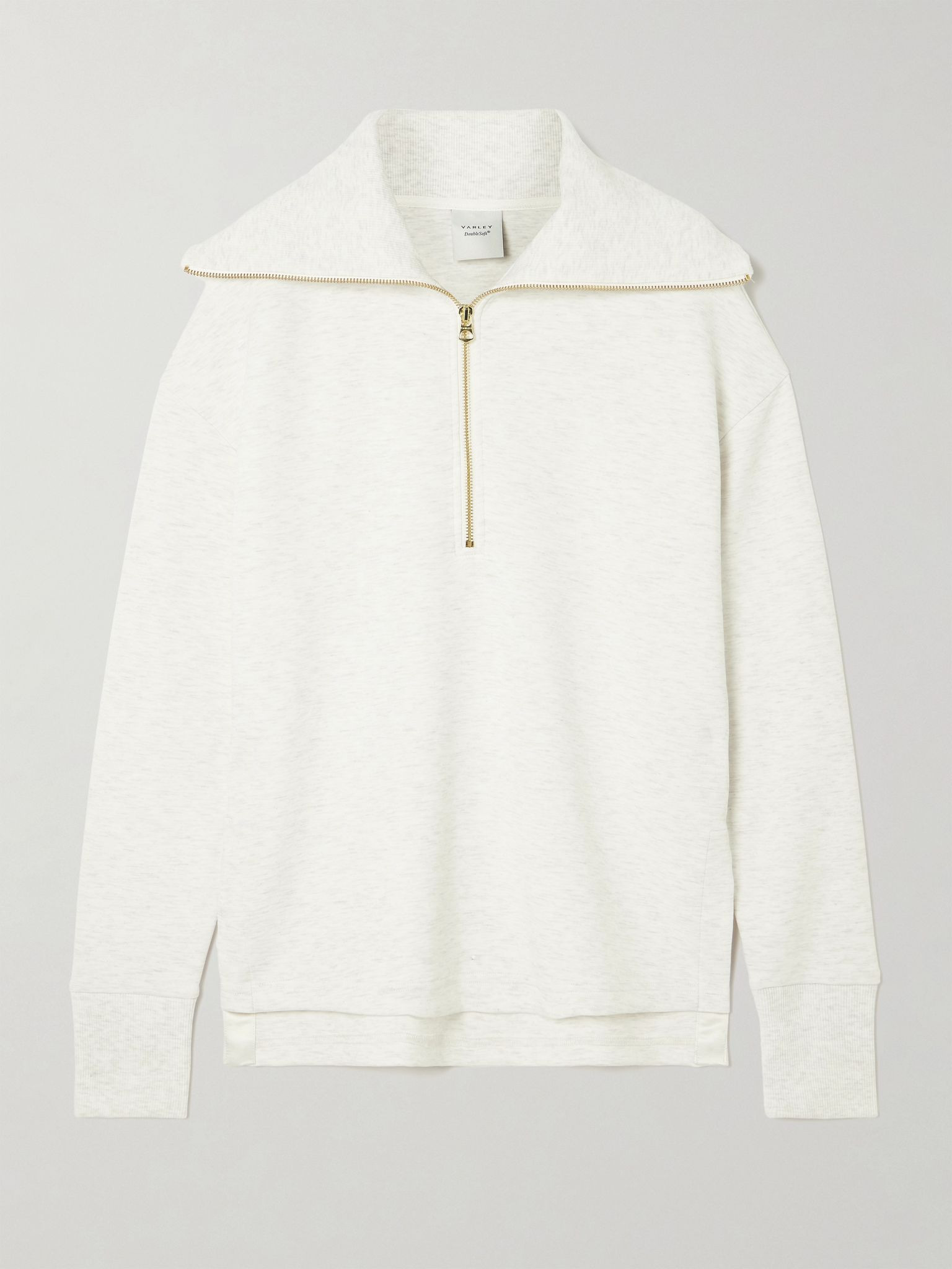 Varley's 'Larson' sweatshirt is made from the label's DoubleSoft® jersey that's smooth, lightweight and breathable. Designed for a relaxed fit, it has an exaggerated collar and a half-zip placket that allows you to adjust the coverage. Wear yours with leggings and sneakers on casual days. Size & Fit - Fits true to size, take your normal size - Designed for a relaxed fit - Mid-weight, stretchy fabric - Model is 177cm/ 5'10" and is wearing a size Small Model measurements: - Bust: 77cm/ 30.5" - Waist: 62cm/ 24.5" - Hip: 88cm/ 34.5" Details & Care - Ivory DoubleSoft® - Zip fastening along front - 81% viscose, 15% polyester, 4% elastane - Machine wash