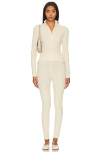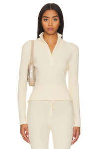 - 51% viscose 30% polyester 19% nylon - Made in China - Dry clean recommended - Partial front zipper closure - Stand up collar - Ribbed knit jersey fabric - Item not sold as a set - The Varley Demi Half Zip Pullover boasts a half-zip design with placement rib detailing for a contemporary finish. - Revolve Style No. VARR-WK115 - Manufacturer Style No. VAR01664