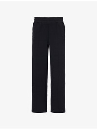 Drawstring-waistband wide-leg mid-rise stretch-woven trousers
