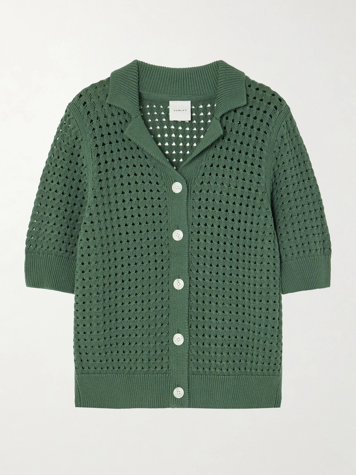Varley's ‘Ellie' shirt is made from soft cotton that's knitted in a breathable open construction. It's designed for a slightly loose fit defined by ribbed trims and has a notched collar and contrasting buttons. Underpin yours with a tank or bralette.