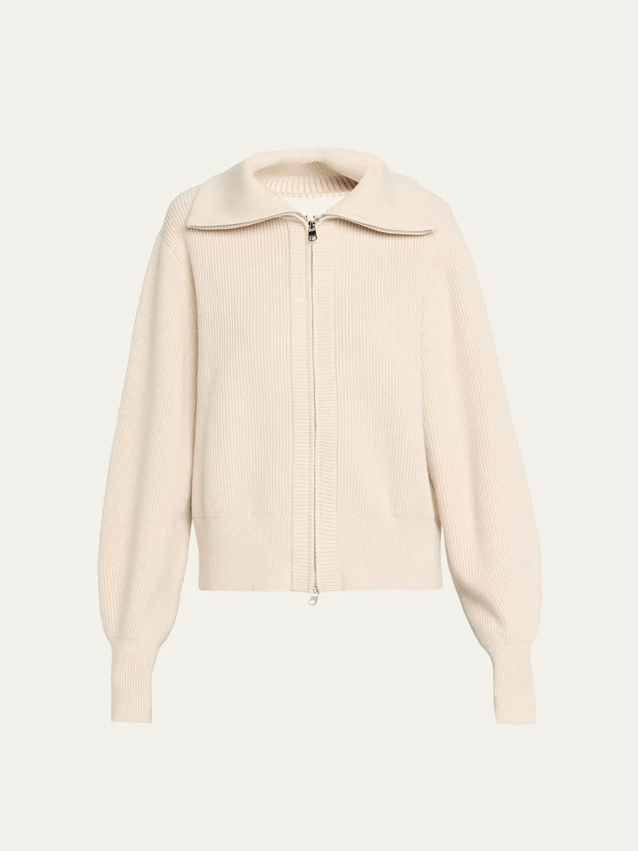 Blending versatility with comfort, the "Enrico" jacket by Varley is crafted from a soft, midgauge rib stitch ideal for cool weather layering Approx. 21.7"L from shoulder to hem Oversized foldback collar; twoway front zipper Dropped shoulders Long sleeves Relaxed fit Hip length Viscose/polyester Imported