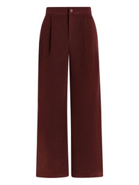 pleated wide-leg trousers Highlights - Dark red - Corduroy texture - Wide leg - Pleated front - Button and zip fastening - High waist Imported Composition Polyester 100% Washing instructions Read Manufacturer Guidelines