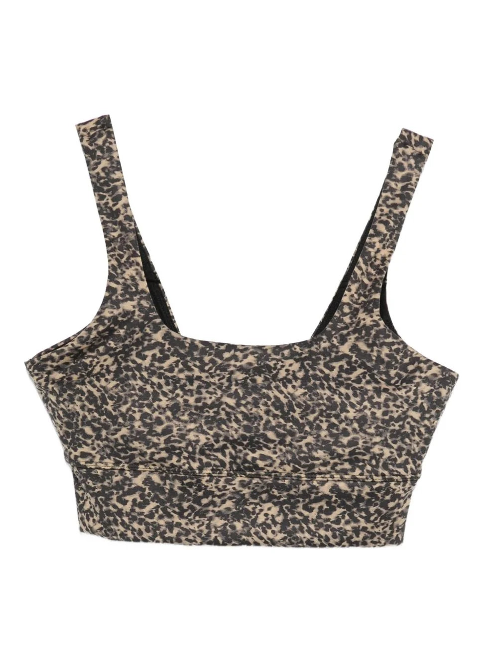 cheetah-print sports bra Highlights - Beige and black - Cheetah print - Square neck - Wide straps - Elasticated underband - Sleeveless Imported Composition Outer: Polyester 75%, Elastane 25% Lining: Polyamide 92%, Elastane 8% Washing instructions Machine Wash