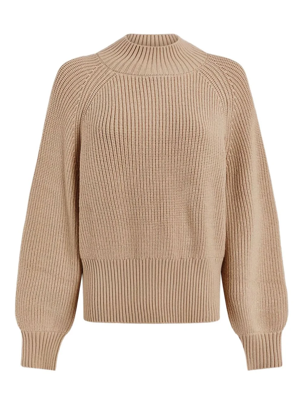high-neck ribbed jumper Highlights - Beige - High neck - Ribbed knit - Raglan sleeves - Boxy shape - Cropped hem Imported Composition Viscose 42%, Polyester 30%, Nylon 20%, Lyocell 8% Washing instructions Read Manufacturer Guidelines