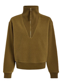 Jaylin half-zip fleece sweater Highlights - Olive - Half-zip fastening - Ribbed hem - Long sleeves - High neck Imported Composition Recycled Polyester 100% Washing instructions Machine Wash