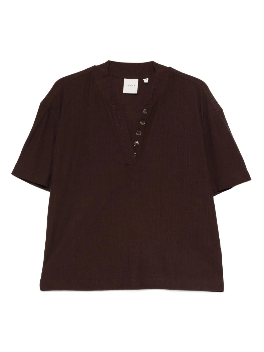 Kasey button-placket top Highlights - Brown - Short sleeves - Button placket Imported Composition Polyester 65%, Viscose 27%, Elastane 8% Washing instructions Machine Wash