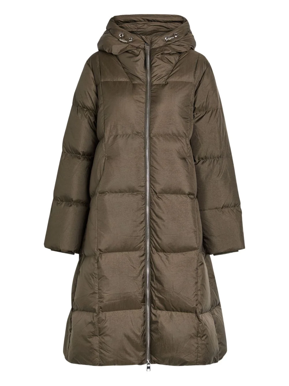 hooded oversized coat Highlights - Dark olive - Metallic finish - Hooded - Zip fastening - Long sleeves Imported Composition Outer: Nylon 100% Lining: Polyamide 100%, Down 90%, Feather 10% Washing instructions Read Manufacturer Guidelines
