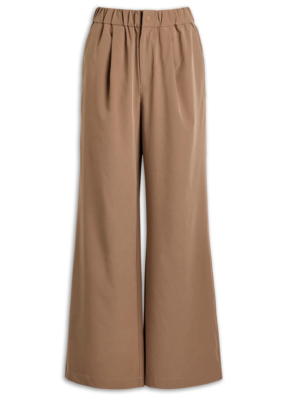 Info & Care Varley woven trousers Elasticated waist, pleats at front, side slip pockets, faux slit pockets at back Concealed push-stud and zip fastening at front 86% recycled polyester, 15% elastane Machine wash Size & Fit Inside leg length: 32 inches/ 81cm Midweight Wide-leg cut Model is 5'10"/ 178cm and wears a size small