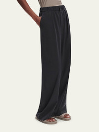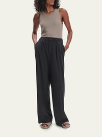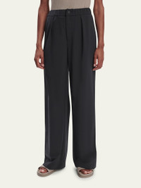 Varley "Kayson" pants crafted from a soft stretch woven fabric with front pleating Approx. 29.5" inseam Mid-rise waistband Side-entry pockets Back welt pockets Full length Wide legs Button/zip fly Polyester/elastane Imported Online Inquiries: BGS21_T6GDV| Store Inquiries: #4979807