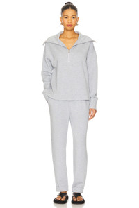 - Body: 81% viscose 15% polyester 4% elastane Rib: 64% viscose 32% polyamide 4% elastane - Hand wash recommended - Front partial zip closure - Ribbed trim - Foldover collar design - Midweight soft jersey fabric - Item not sold as a set - Revolve Style No. VARR-WK184 - Manufacturer Style No. VAR02444