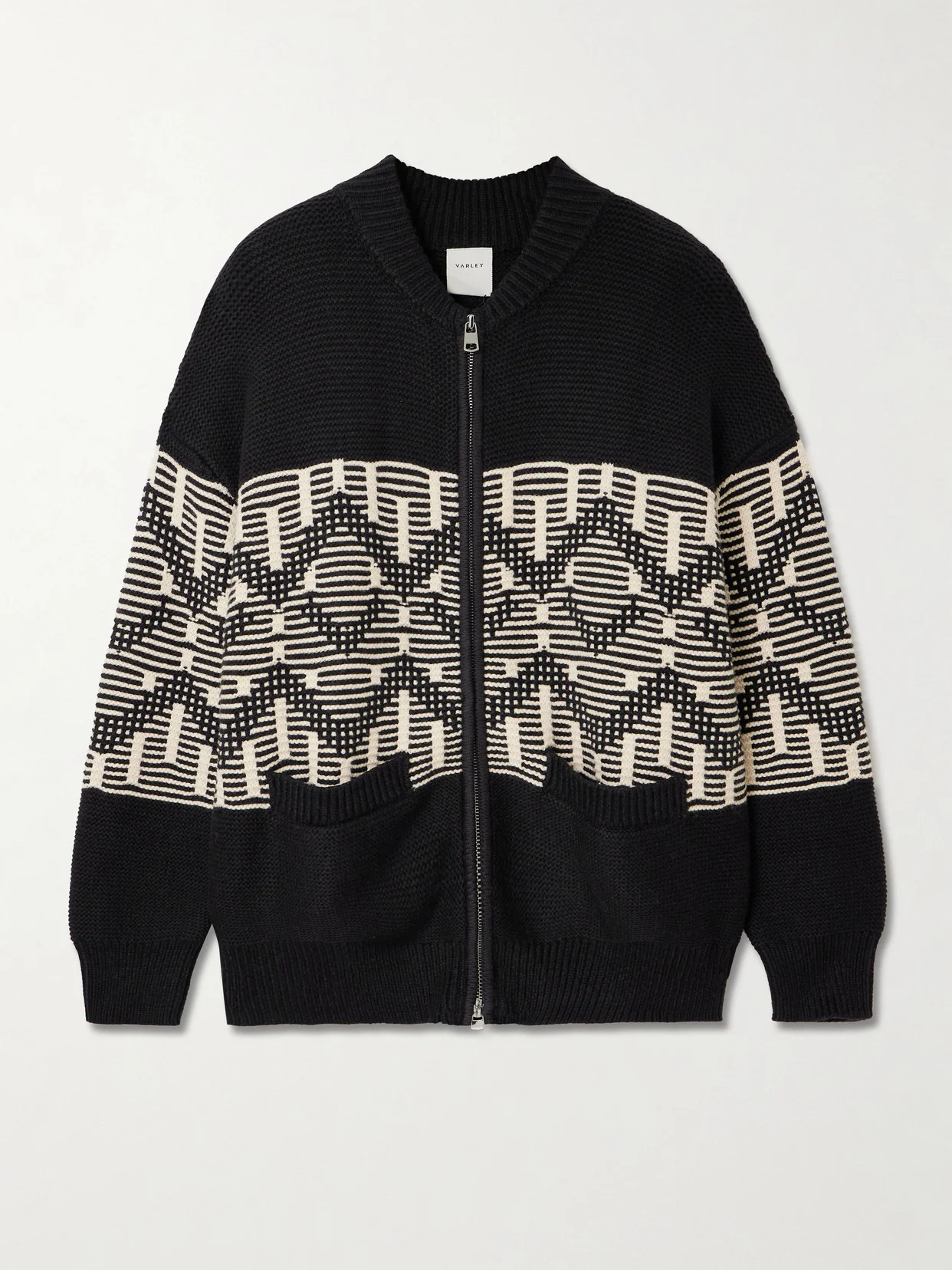 Varley's latest apres-ski capsule delivers chic alpine essentials that you can also wear at home. This 'Linnea' cardigan is knitted from cotton-blend in a Fair Isle-inspired pattern.