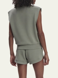 Varley "Loretta" sweatshirt Half-zip shawl collar Sleeveless Hip length Relaxed fit Banded hem Pullover style Viscose/polyester/elastane Imported Model is 5'10"/177cm. Online Inquiries: BGS21_T6R8D| Store Inquiries: #4804879