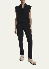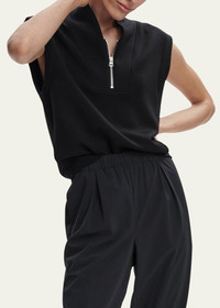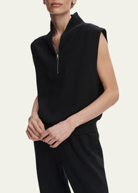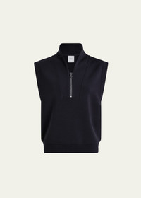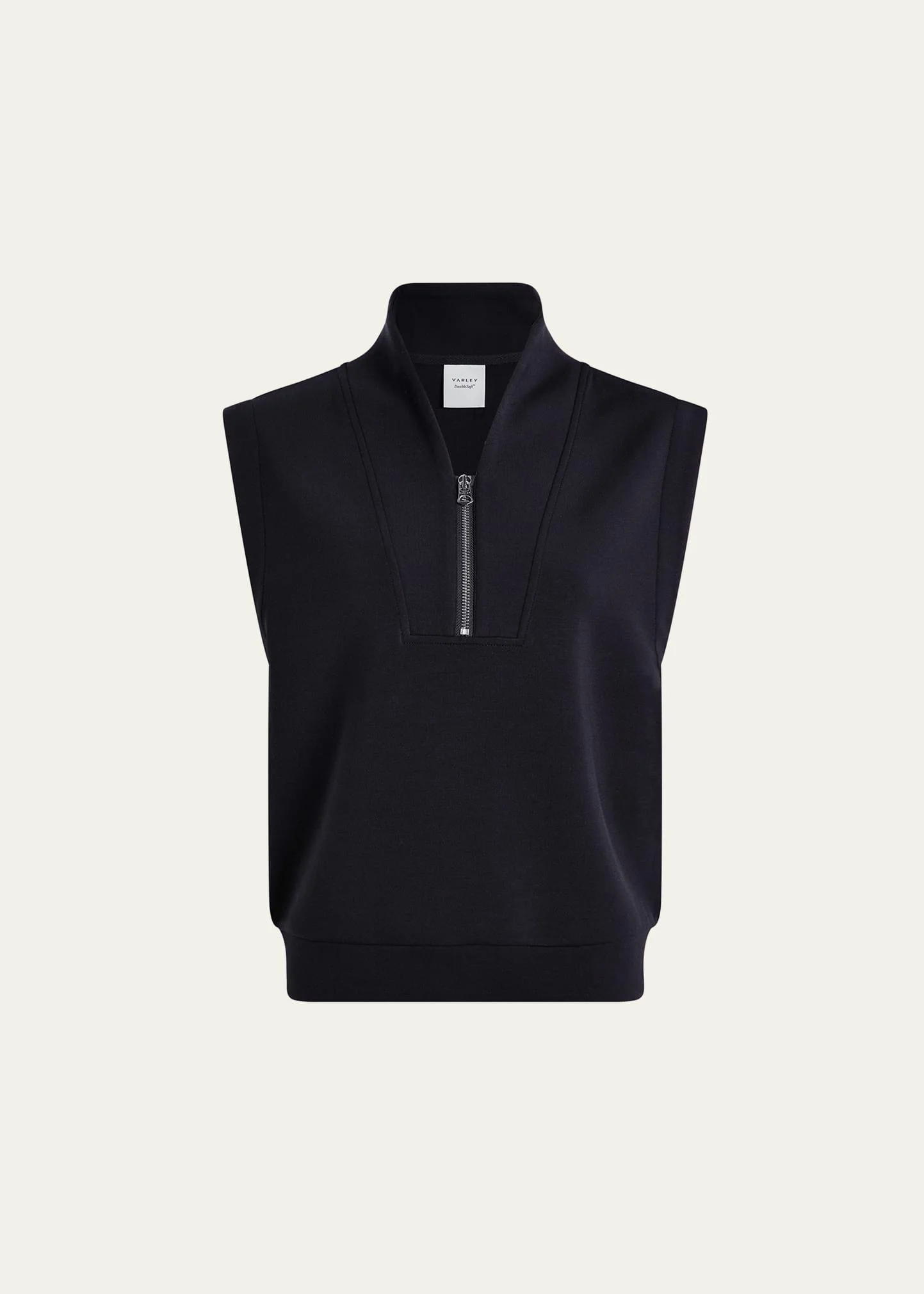 Varley "Loretta" sweatshirt Half-zip shawl collar Sleeveless Hip length Relaxed fit Banded hem Pullover style Viscose/polyester/elastane Imported Model is 5'10"/177cm. Online Inquiries: BGS21_T6R8D| Store Inquiries: #4804879