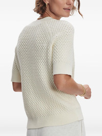 Lucy textured short-sleeve T-shirt Highlights - Off-white - Open knit - Raglan sleeves - Round neck - Short sleeves - Textured pattern Made in United Kingdom Composition Viscose 50%, Nylon 30%, Polyester 20% Washing instructions Read Manufacturer Guidelines