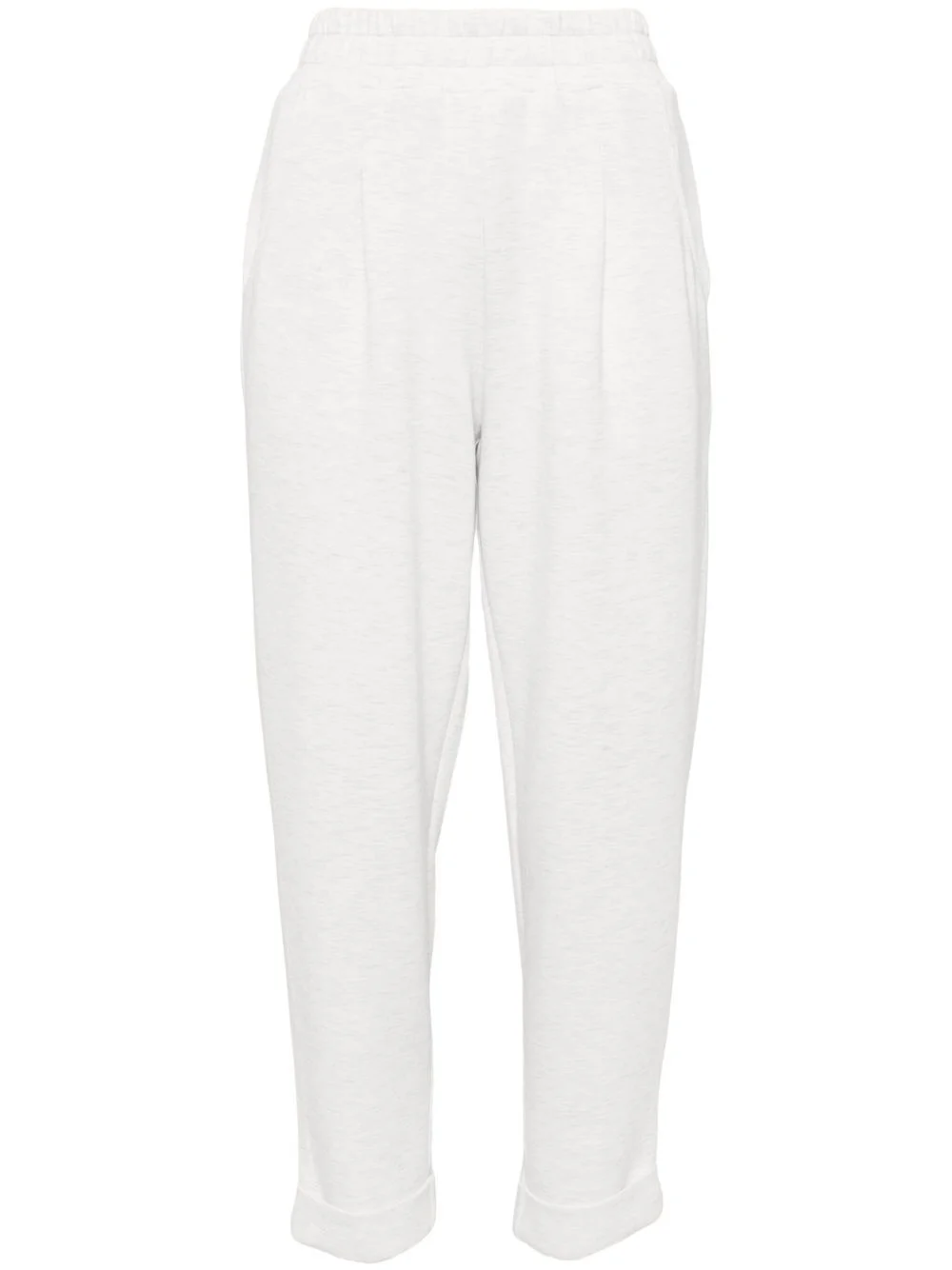 melange-effect tapered trousers Highlights - Light grey - Melange effect - Box-pleat detail - High-waisted - Elasticated waistband - Two side inset pockets - Tapered leg - Cropped leg Imported Composition Viscose 72%, Polyester 23%, Elastane 5% SIZE & FIT Model measurements Height 5 ft 10 in(1.78 m) Bust/Chest 32.67 in(83 cm) Hips 37 in(94 cm) Waist 25.59 in(65 cm) FittingInformation Designed for a tapered fit, these trousers allow for a close fit at the waist and a loose unrestricted fit over the leg with a closer fit towards the ankle The elasticated waist allows for a comfortable fit Made from a midweight stretch fabric, this piece offers elasticity and flexibility when worn This piece fits true to size – take your usual size