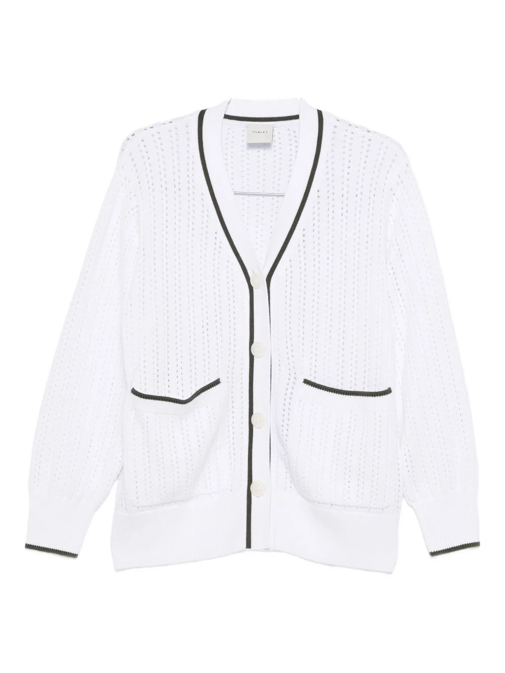 Nissi cardigan Highlights - White - Contrasting trim - V-neck - Patch pockets - Button fastening Imported Composition Cotton 100% SIZE & FIT Model measurements Height 5 ft 10 in(1.78 m) Bust/Chest 33.46 in(85 cm) Hips 36.22 in(92 cm) Waist 23.22 in(59 cm) Washing instructions Machine Wash