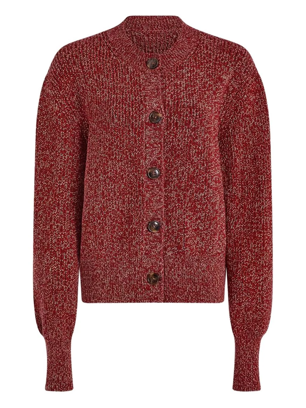 speckled rib cardigan Highlights - Red flecked - Rib knit - Button fastening - Round neck - Long sleeves - Balloon sleeves Imported Composition Viscose 42%, Polyester 30%, Nylon 20%, Lyocell 8% Washing instructions Read Manufacturer Guidelines