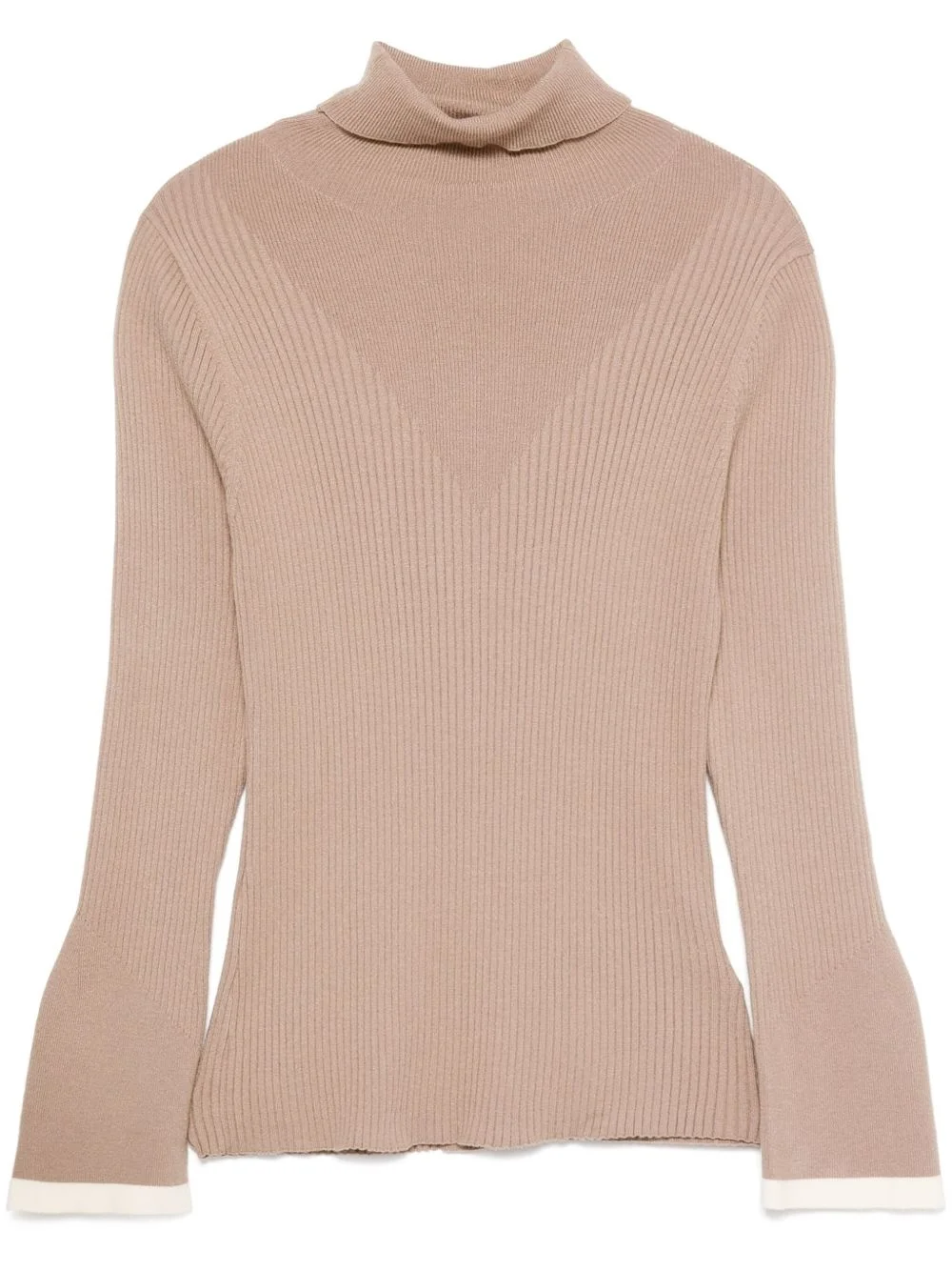 Ravena sweater Highlights - Fungi brown - Ribbed knit - Turtleneck - Long sleeves - Contrasting border to the cuff - Straight hem Made in United Kingdom Composition Viscose 50%, Polyester 30%, Nylon 20% Washing instructions Machine Wash