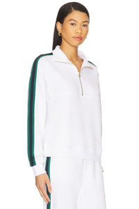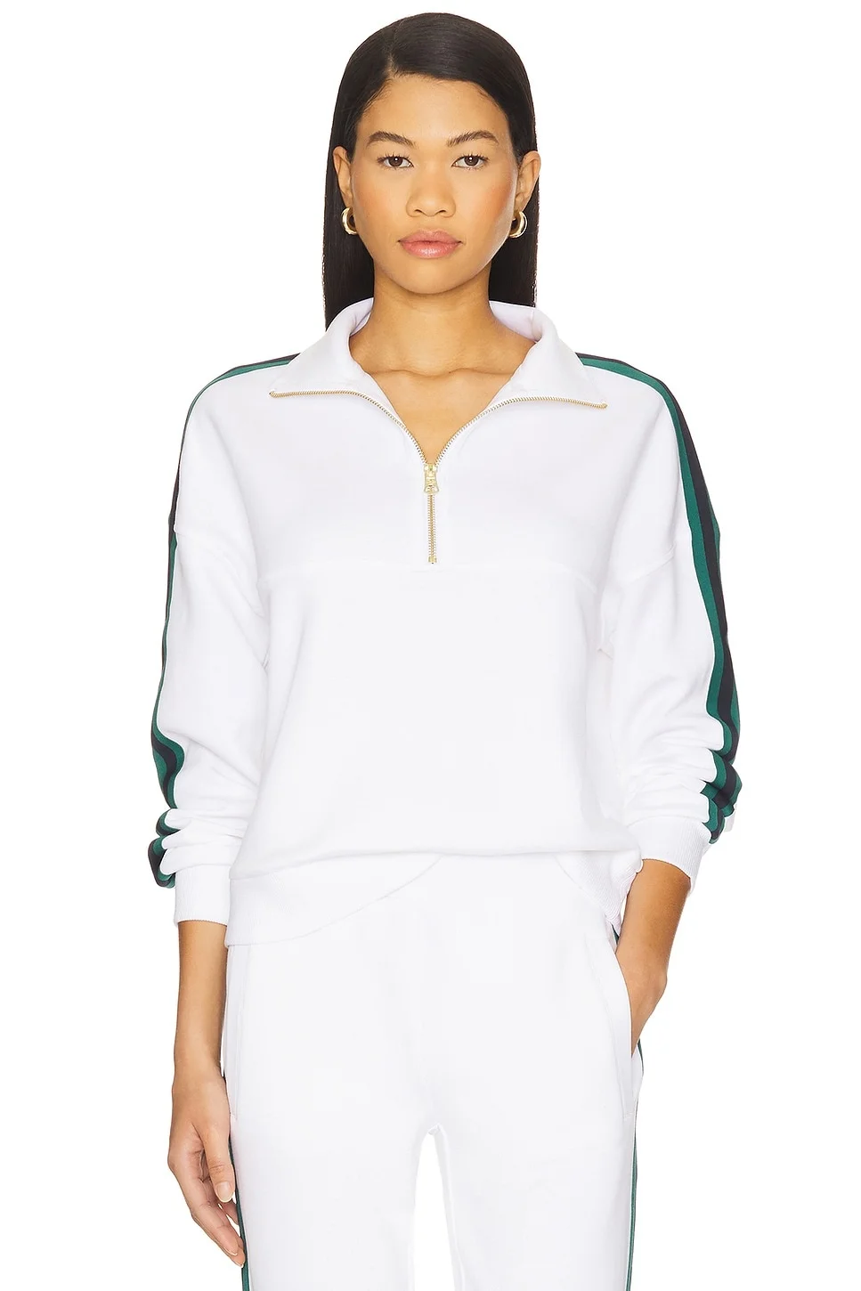 - Self: 81% viscose 15% polyester 4% elastane Contrast Fabric: 68% viscose 29% polyester 3% elastane - Machine wash cold - Front partial zip closure - Ribbed cuffs and hem - Midweight jersey fabric - Item not sold as a set - Revolve Style No. VARR-WK171 - Manufacturer Style No. VAR02472
