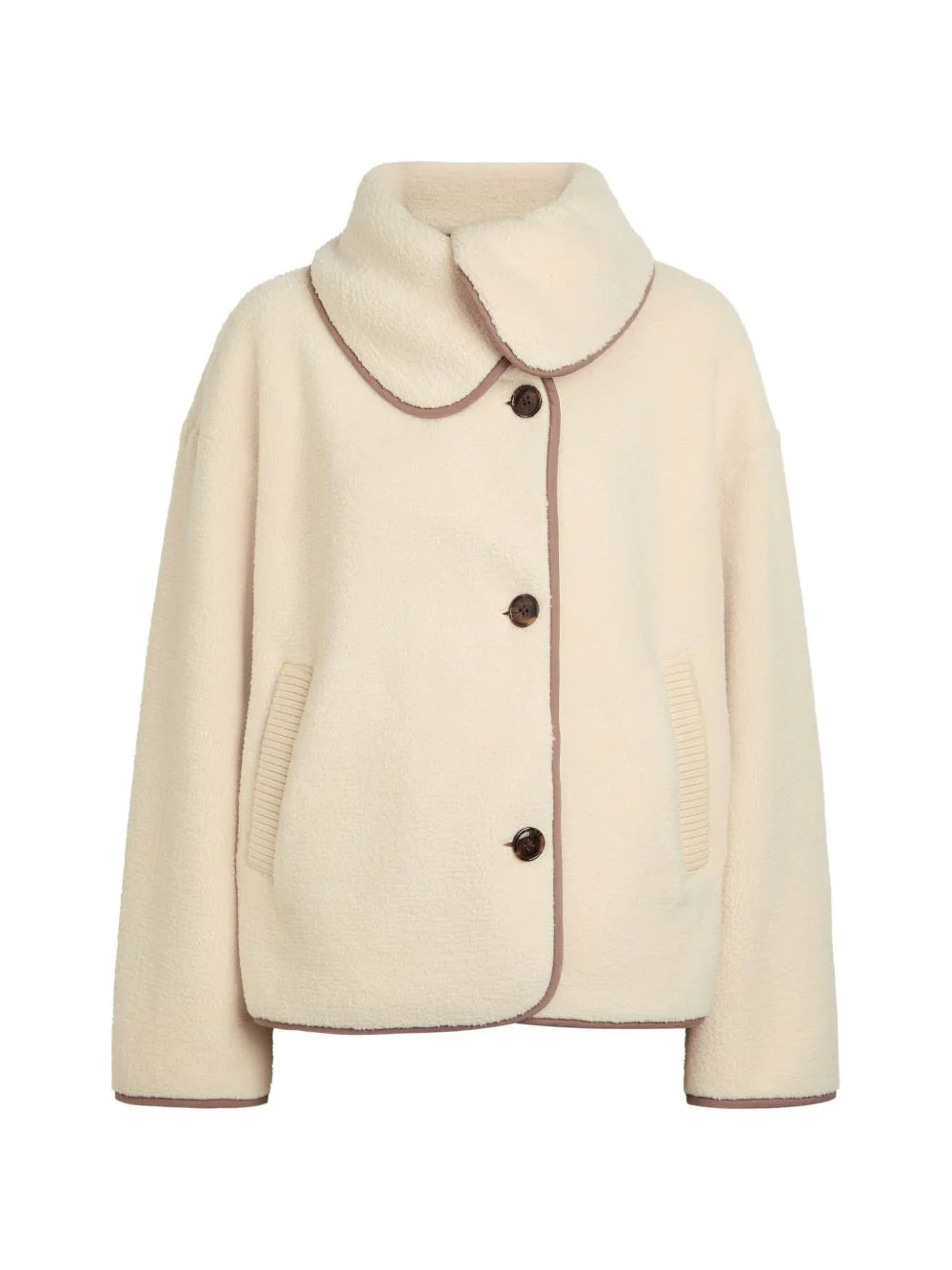 button trim jacket Highlights - Beige - Button fastening - Front pockets - High neck - Fleece texture Imported Composition Polyester 100% Washing instructions Read Manufacturer Guidelines