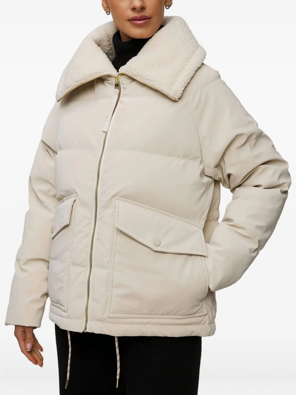 Roseville puffer jacket Highlights - Beige - Quilted - Faux-shearling collar - Front zip fastening - Two flap pockets - Drawstring hem Made in United Kingdom Composition Polyester 100% Washing instructions Read Manufacturer Guidelines
