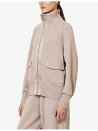 PRODUCT DETAILS - Varley stretch-woven jacket - 72% viscose, 23% polyester, 5% elastane - Exposed zip fastening at front - Relaxed fit, high funnel neck, long raglan sleeves, two front patch pockets. DoubleSoft fabric, contrast sateen trims, ribbed cuffs and hem - Machine wash cold - True to size - Model is 5ft 10in/1.78m and wears a size small - Midweight, slight stretch Ref: R04392344