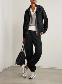 EDITORS'NOTES Made from signature DoubleSoft®, Varley's 'Roxbury' sweatshirt feels smooth and breathable. The satin zipped placket adds an elegant touch to an otherwise classic athleisure staple. SIZE & FIT Model measurements: - Fits true to size, take your normal size - Intended for a relaxed fit - Mid-weight, slightly stretchy fabric - Model is 180cm/ 5'11" and is wearing a size Small - Bust: 80cm/ 31.5" - Waist: 65cm/ 25.5" - Hip: 89cm/ 35" DETAILS & CARE - Black DoubleSoft® and satin - Two-way zip fastening through front - 72% viscose, 23% polyester, 5% elastane - Machine wash