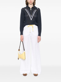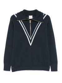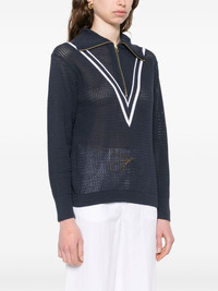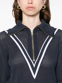 Savannah sweater Highlights - Navy blue - Short front zip fastening - Oversized pointed collar - Ribbed trim Imported Composition Cotton 100% SIZE & FIT Model measurements Height 5 ft 10 in(1.79 m) Bust/Chest 35.43 in(90 cm) Hips 35.03 in(89 cm) Waist 25.19 in(64 cm) FittingInformation Designed for a relaxed fit, this piece allows for comfort and movement when worn Made with a midweight knit, this piece offers some stretch Washing instructions Machine Wash