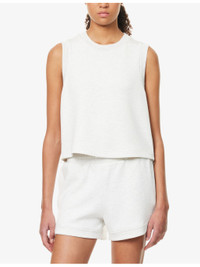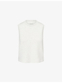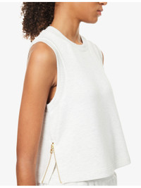 PRODUCT DETAILS - Varley knitted vest - 81% viscose, 15% polyester, 4% elastane - Round neck, sleeveless, dropped armhole, side slits with zip, ribbed trims - Machine wash cold - True to size - Model is 5ft 10in/1.78m and wears a size small - Lightweight, stretchy Ref: R04470174