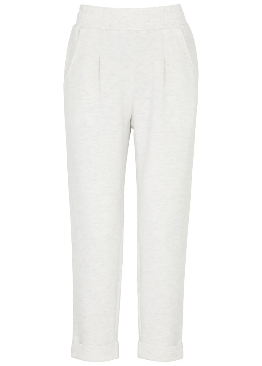 INFO & CARE - Varley DoubleSoft™ stretch-jersey sweatpants - Elasticated concealed drawstring waistband, two slip pockets, pleated details at waist, turn-up cuffs, cropped - Pull on - 72% viscose, 23% polyester, 5% elastane - Machine wash SIZE & FIT - Inside leg length: 23.5 inches/ 59.5cm - Midweight - Relaxed fit - Model is 5'9"/ 175cm and wears a size small